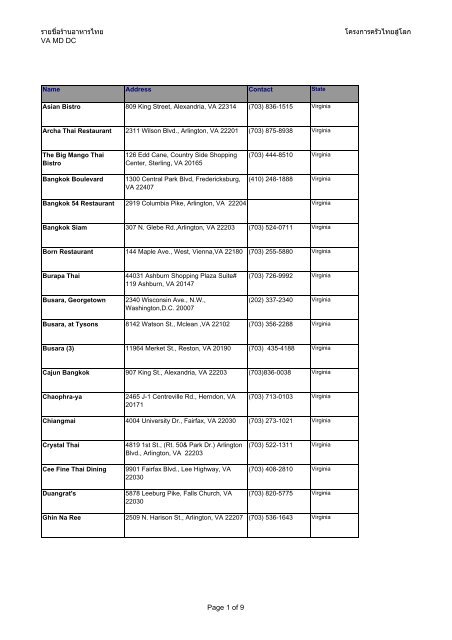 Bangkok Golden Thai Restaurant Menu In Fairfax Virginia Usa